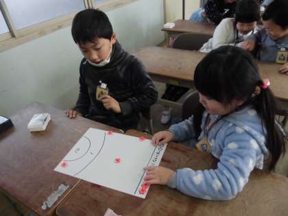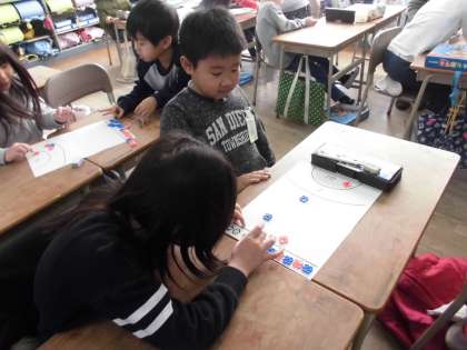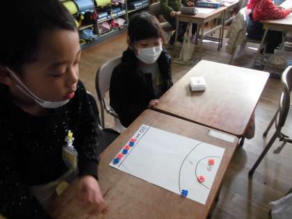 今日は、おはじきを使ったゲームをしながら学びました。
