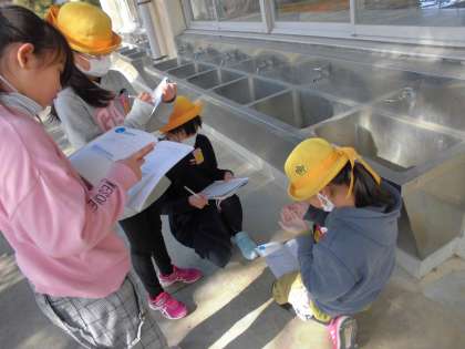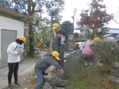 今日の理科は、冬の生き物を観察しに行きました。なかなか生き物が見つからず、苦戦しましたが、生き物がいそうなところを協力して探していました。1年間の生き物の様子の違いをまとめていきます。
