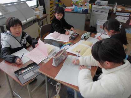 グループで自分のことを話したり、友達のエピソードを話したりしながらまとめています。