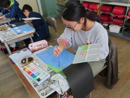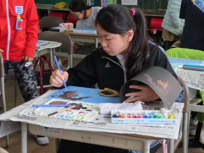 どろどろの絵の具を塗って、しっかりと着色していきました。