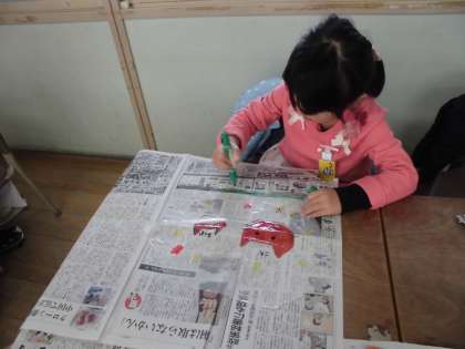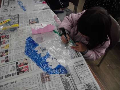 今日は、「世界にたった一つだけのたこをつくろう」というめあてで、子どもたちは思い思いにたこの絵柄を描きました。