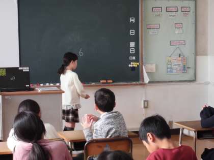 英語を聞いて日本語にしたり、黒板に書いたりしました。