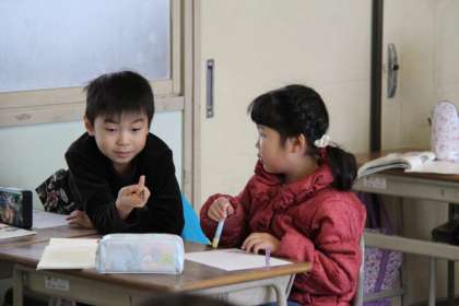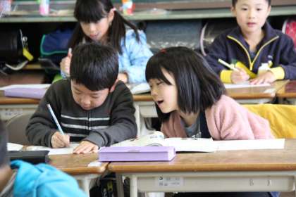 国語で、クイズを出すために、ペアで答えやヒントを何にするか、ヒントを出す順番をどうするかを考えました。みんないい表情で話し合っていました。