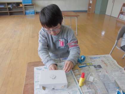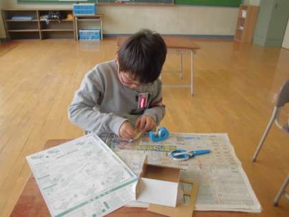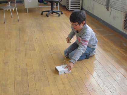 今日の図工は、「ゴムの力で動くおもちゃ」を作りました。ゴムで動く部分の仕組みを説明書を読んで丁寧に作りました。