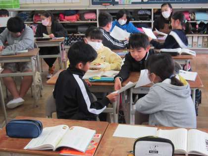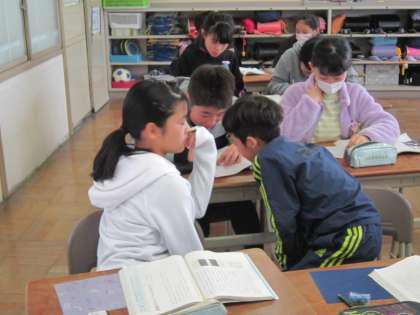 国語で、メディアとの関わり方を考えました。メディアが情報の全てを伝えているとは限らないことを学び、どのように関わっていくかを考えて意見交換しました。