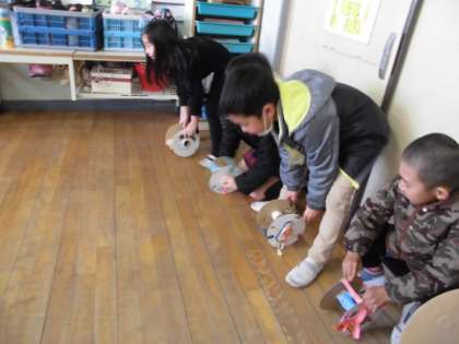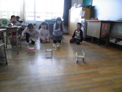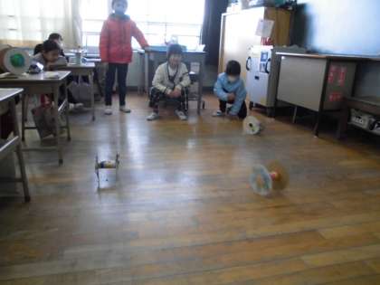 今日は、みんなの前で転がしてみて、友達の作品のよいところ見つけをしました。