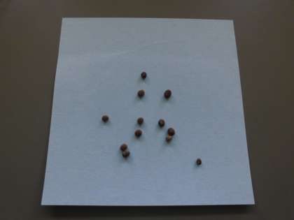 下のしゃしんのたねは、赤やピンク、むらさきなど、いろいろな色の花が咲きます。ホ○○○○という名前です。