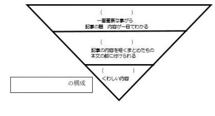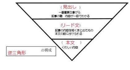 その工夫の一つが、この三角形です。( )には、本文、リード文、見出しのどれかが入ります。考えてみましょう。