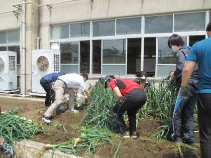 きょうは、せんせいたちで たまねぎの しゅうかくをしました。