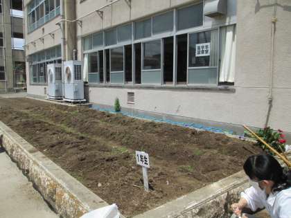 このあと たがやして、せいかつの きょうかしょに のっている ひまわりやおしろいばな、まりいごうるどなどの たねやなえを うえます。きれいなはなが さきますね。せんせいは、みんなと いっしょに かんさつするひを たのしみに していますよ。
