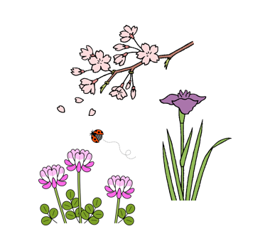 イラストの中のサクラ、レンゲ、しょうぶも春のものです。