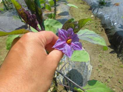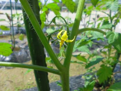 今日はミニトマト、ナスの花です。すごくきれいになってきました。さいしょの花はとりのぞくほうがみがよくそだつので、かわいそうですが、花はとりのぞきました。大きくそだって大きなみをつけてほしいですね。