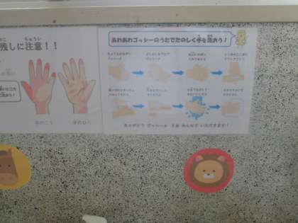 みなさんは、てあらいのうたもおぼえていますか。とうこうしたら、すぐにてをあらいましょうね。
