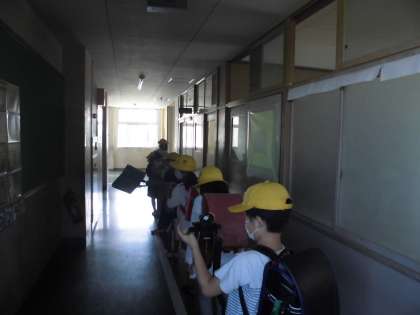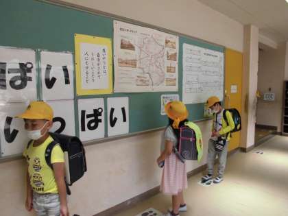 下校も、並んで靴を履きかえるまで、ソーシャルディスタンスを保っています。
