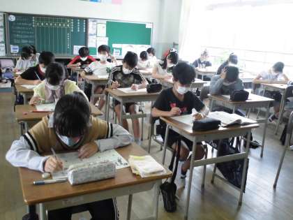 今日の算数の学習の様子です。今日の算数は、5年生の学習の「変わり方」「輪投げ」を勉強しました。○や△を使って式に表しました。久しぶりの学習にもみんな集中して取り組むことができました。