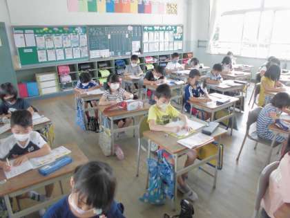 国語の時間では、漢字の練習をしました。