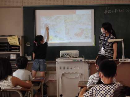 社会科の授業では、教科書のイラストを見て考えたり、教科書から大切な部分を抜き出してプリントに記入したりしました。