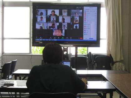 およそ半分の児童が参加しました。操作方法で少し困ることもありましたが、画面を通して担任の先生と会話することができました。