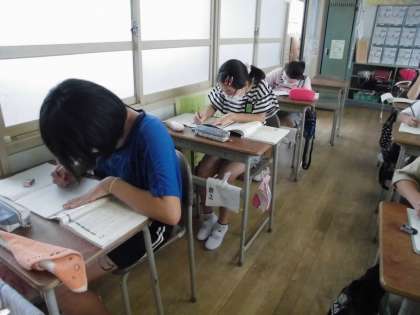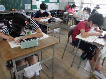 今日の国語は「帰り道」の学習を終えての感想を書きました。自分の書きたい観点を決めて、スラスラと集中して感想が書けている姿を見て、さすが6年生と思いました。