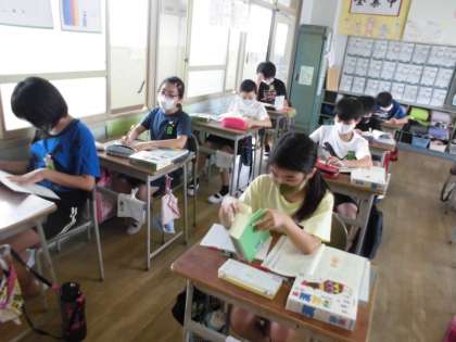 今日の国語は、漢字の形や音、その意味について学習しました。漢字辞典を使い、部首による意味を調べました。様々な漢字の形をよく見て共通する部分などを見つけました。