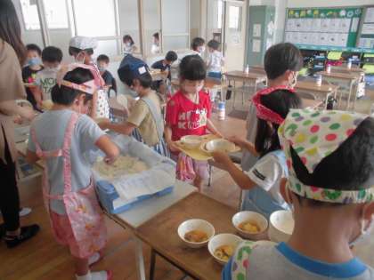 給食当番がB班になりました。初めての配膳もスムーズに上手にできました。