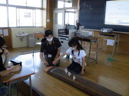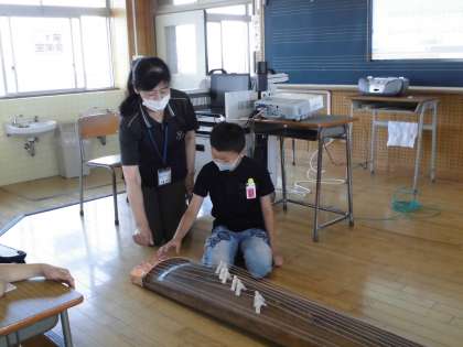 音楽では、「さくらさくら」のワンフレーズを、琴で演奏しました。