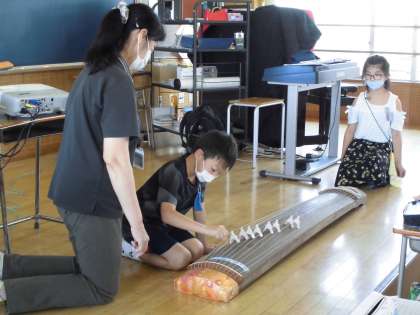 初めて聞く、初めて触る琴に子どもたちはどきどき。