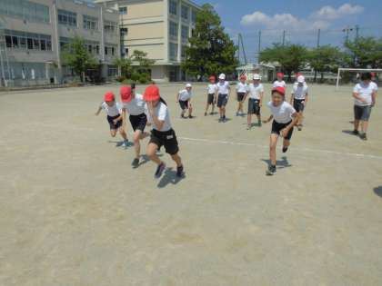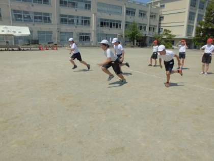今日の体育は、「走の運動」をメインに学習しました。いろいろな姿勢からのスタートを切ったり、スタートダッシュをつけたりと、走る力を伸ばしました。また、なわとびでいろいろな跳び方にもチャレンジしました。天気も良く、気持ちよく体育ができましたね!