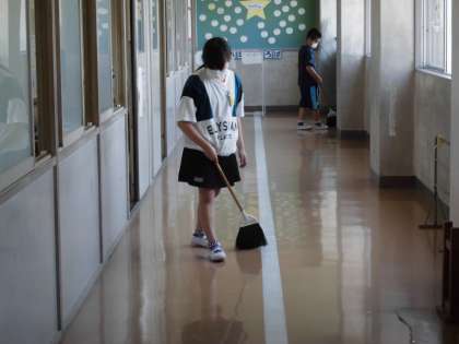 掃除の時間は、シーンと静かに掃除を行っています。掃除場所を真剣に掃除をしていると、なんだか楽しくなってきます。