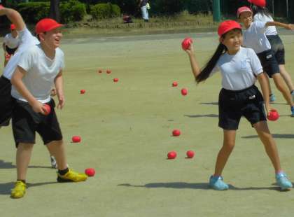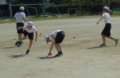 今日の体育は、50m走の計測とボール投げの練習をしました。天候にも恵まれ、計測をすることができました。また、明日はボール投げをする予定なので、今日は紅白玉入れの玉を使ってより遠くへ投げる投げ方を練習しました。力の入れ方や投げる角度などを考えながら取り組みました。