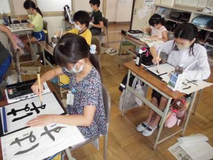 今日は、「はす」の文字を書きました。筆先を上手く使って、結びの練習を行いました。