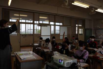 今日の英語は、世界の国について学習をしました。クイズを交えて面積の大きい国や人口の多い国など、予想しました。3つのヒントから国を当てるゲームでは、みんな積極的に参加していました。