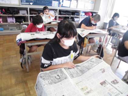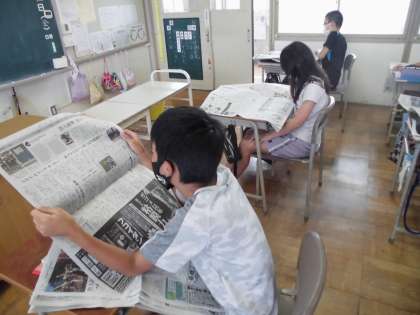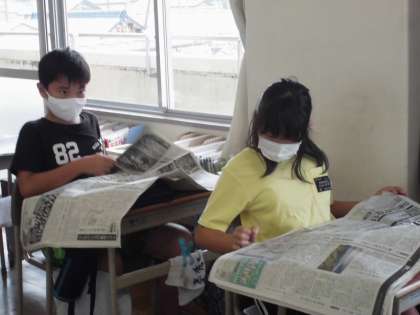 9月4日(金) 5年生 新聞読もう 公開日 2020/09/04 更新日 2020/09/04 5年生のまど 今日は、国語で新聞の書き方の工夫を学習しました。見出しやリード文を読むと、内容がすぐに掴めましたね。