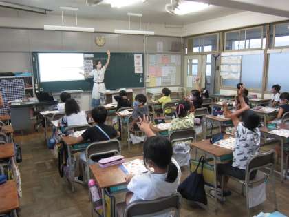 9月7日(月) 3年生 What color do you like? 公開日 2020/09/07 更新日 2020/09/07 3年生のまど 英語の時間に、身の回りのものの言い方と、好きなもののたずね方を学習しました。 好きな色、好きな果物、好きな食べ物など、たずねるものの種類を変えて練習しました。