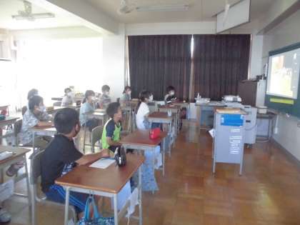 テレビ会議ソフトを使い、教室の子どもたちは集中して様子を見ることができました。