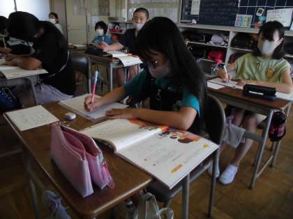 9月8日(火)5年生 道徳 公開日 2020/09/08 更新日 2020/09/08 5年生のまど 今日の道徳は、主人公の葛藤を考えました。子どもたちは、自分だったら…と考える中で、言いにくいことも、「友達を助けたい」「正しいことをしたい」「両方の立場の友達を、どちらも見捨てたくない」という気持ちを勇気に変えていけるといいなと考えていました。