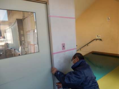 年が明けた新たな気持ちを後押しするように、今日も校舎を塗っていただいています。きれいに塗るためにこんなに丁寧にマスキングをして、はみ出すのを防いでいるのですね。