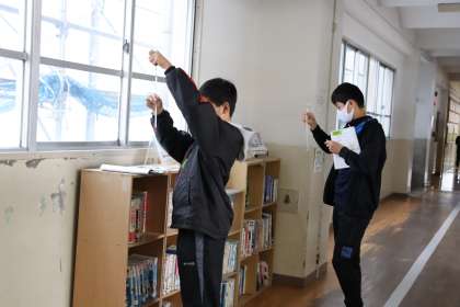 今日の家庭科は、室内の気温を測りました。あいにくの曇り空で、日光による違いは感じ取られなかったところはありますが、各館、各部屋によって気温の違いがあることが分かりました。寒い冬を快適に過ごす工夫を生かしてほしいと思います。