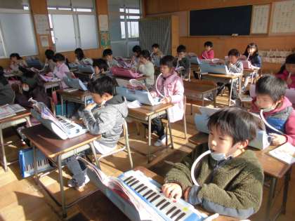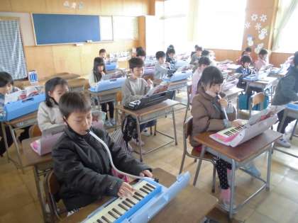 1月14日(木)1年生 鍵盤ハーモニカ練習