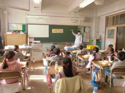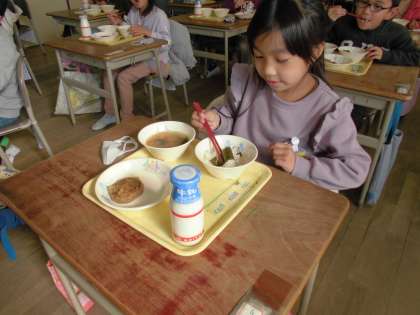 ごはんの上で上手に巻いて食べられるよう挑戦していました。