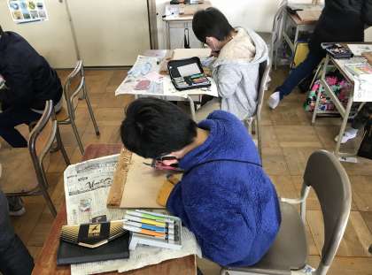 1月14日(木)4年生 初めての彫刻刀に挑戦