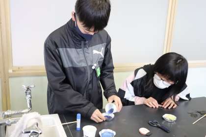 今日は、今までお世話になった先生方に感謝の気持ちを込めて6年生がせっけんを作りました。色を決めたり、丁寧に形を整えたりして、感謝の気持ちを込めて作りました。