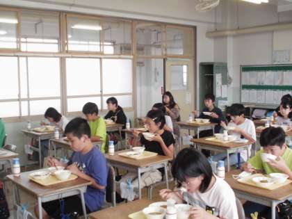 今日から給食がスタートです。だれもしゃべらず、静かに会食できました。