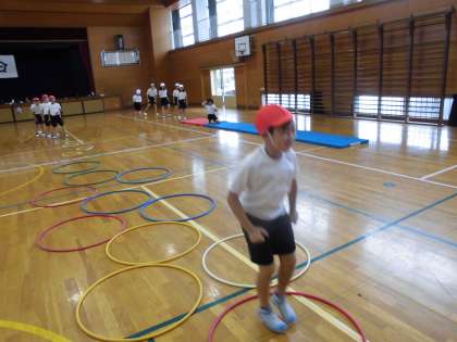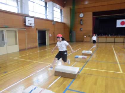 障害物を乗り越えたり、リズミカルに跳んだりして行うことができました。