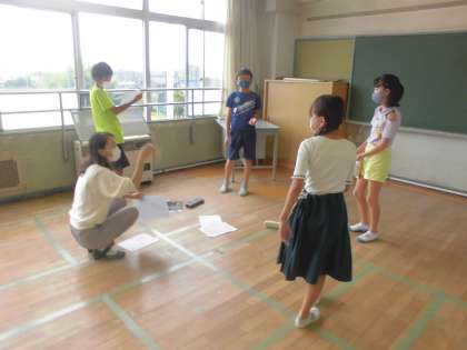 休み時間は、「はなれて なかよく」を合言葉に、過ごしています。ソーランを5年生に教えるための練習も進めています。動きの確認や、伝える言葉の確認も行いました。