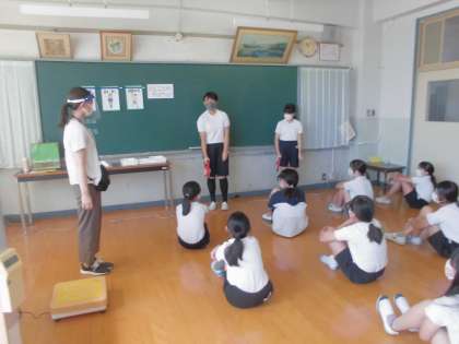 身体測定を行い、残りの時間は、養護教諭の先生と一緒に歯の役割について学習をしました。食いしばることで、運動するときのパフォーマンスが上がることを、実験をしながら確かめました。