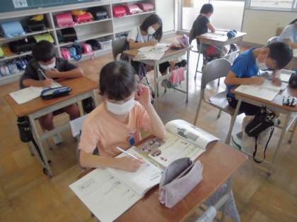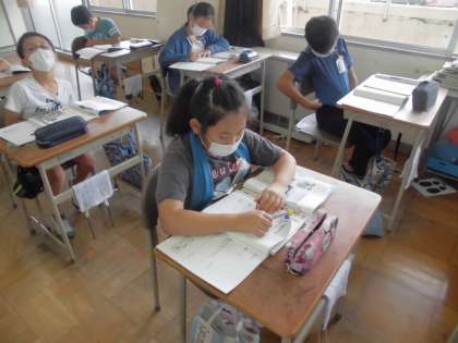 今日の理科の授業では、理科の「雨水のゆくえ」という単元の学習をしました。なぜ水たまりがなくなるのだろうかという問いに対し、いろいろな予想を立てました。次回の実験に生かしていきましょう。