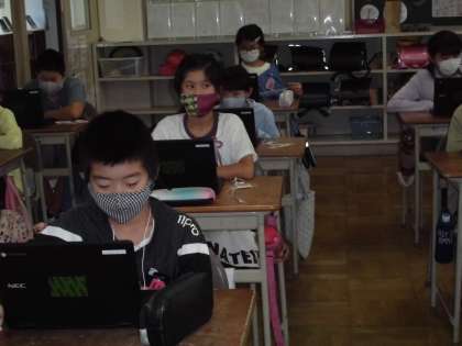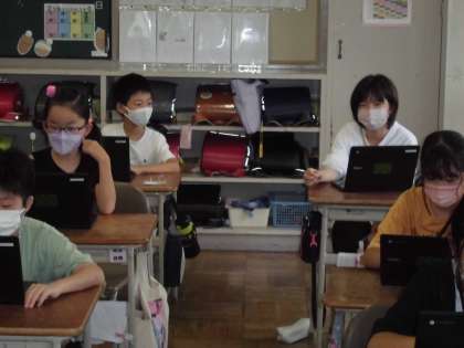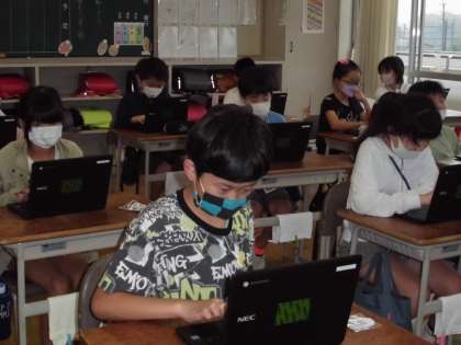 今日はパソコンを使って前回操作した内容の復習をしました。みんなしっかりと覚えていました。その後、付箋を使った対話の練習をしました。会話をしなくても画面上でできる対話に楽しみながら取り組みました。