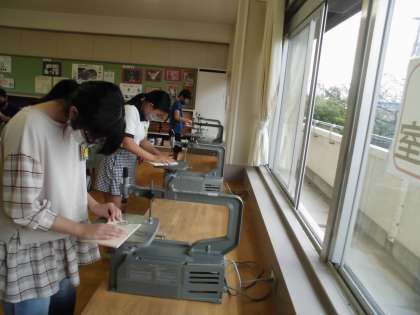 板からテープカッターを作ります。デザインや使い心地を考えて作製中です。