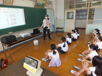 どうして虫歯になるのか、どの歯が虫歯になりやすいのか、虫歯を予防するためにはどうしたらよいかなどを教えていただきました。